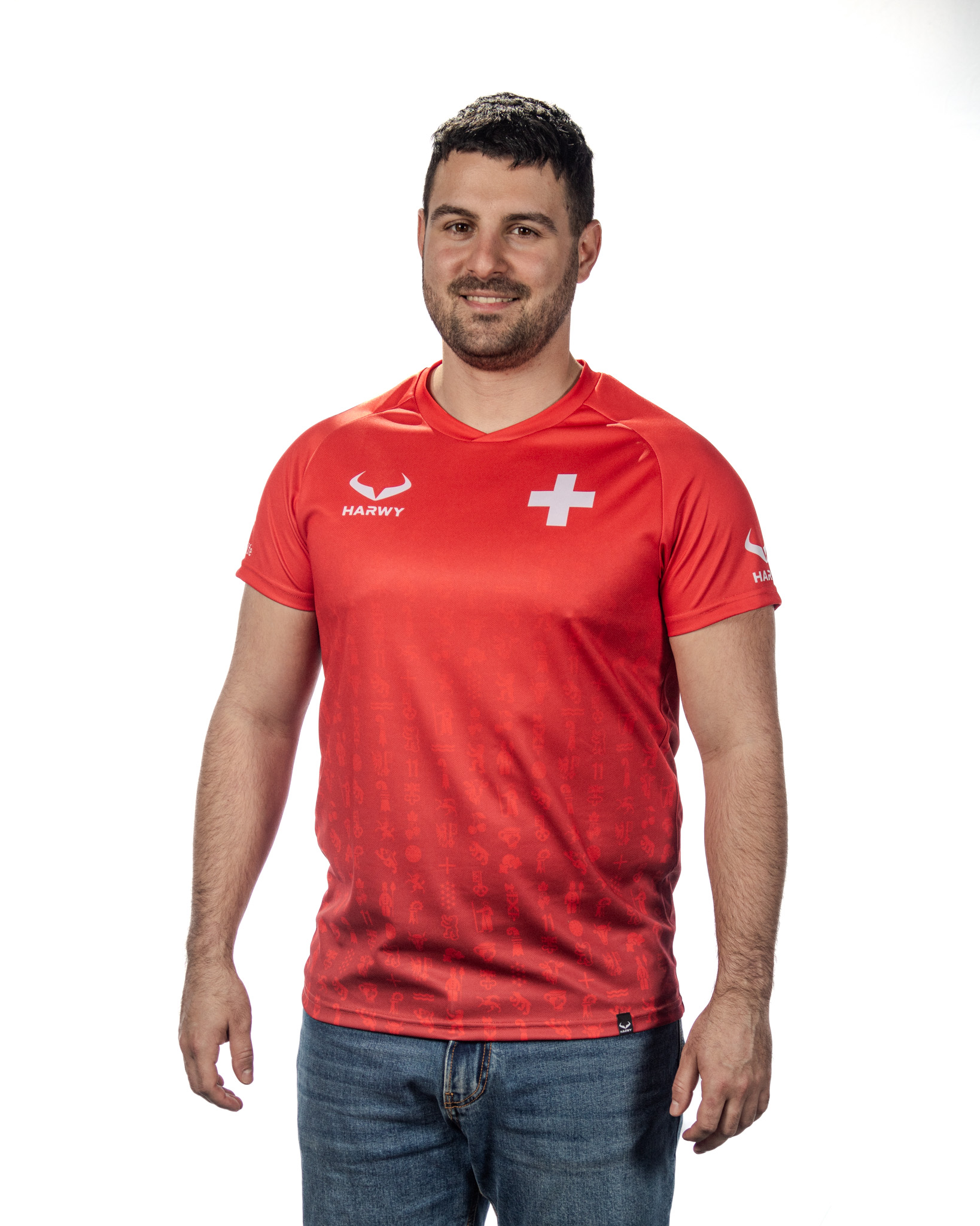 Unser HARWY Hopp Schwiiz Trikot besteht aus synthetischen Fasern und wird mittels Sublimationsdruckverfahren bedruckt. Diese Art des Transferdrucks garantiert eine hohe Atmungsaktivität sowie eine lange Haltbarkeit. Produziert werden unsere Trikots in einer kleinen Produktionsstätte in der Hauptstadt Lettlands (Europa).